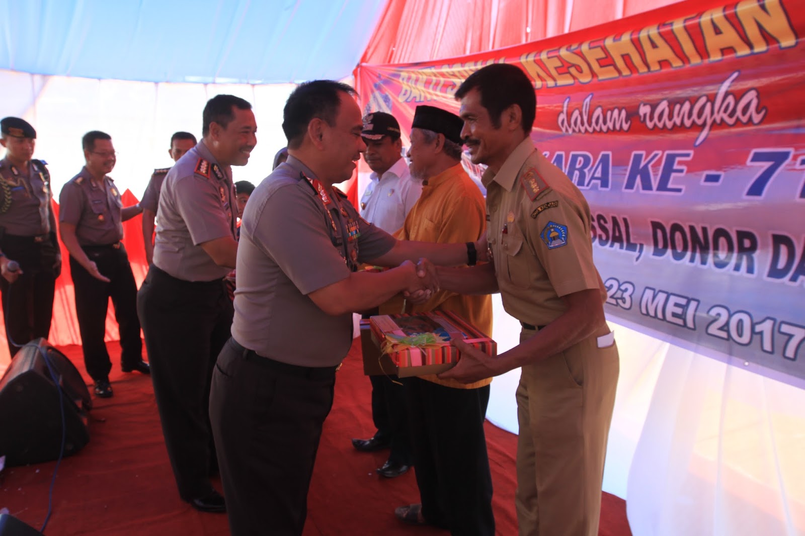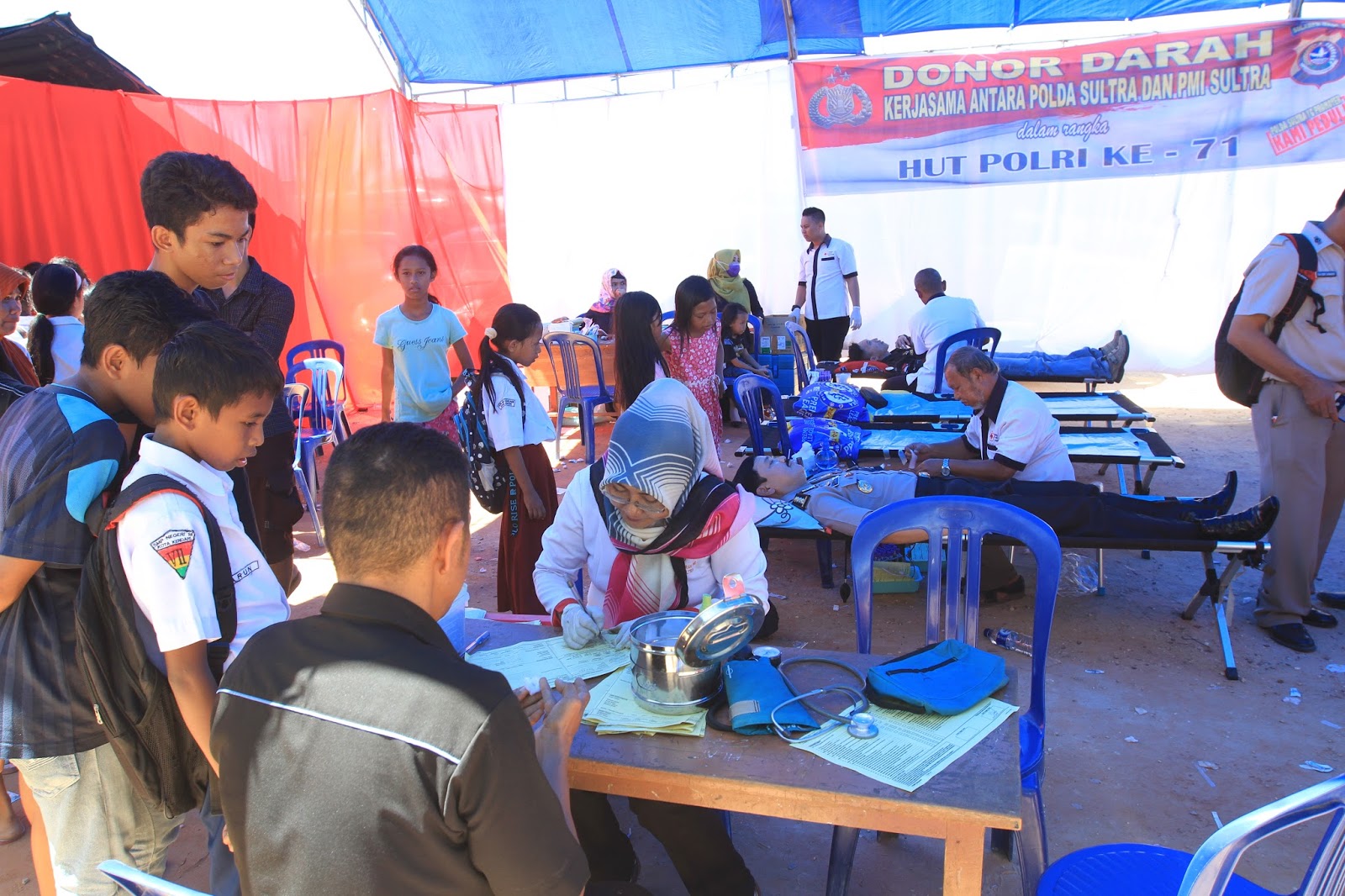 Tidak hanya masyarakat yang meramaikan kegiatan tersebut, sebahagian anggota polri pun turut dalam kegiatan bakti sosial tersebut, hal ini terlihat beberapa perwira berpangkat melati dan bintara sedang berdonor darah.