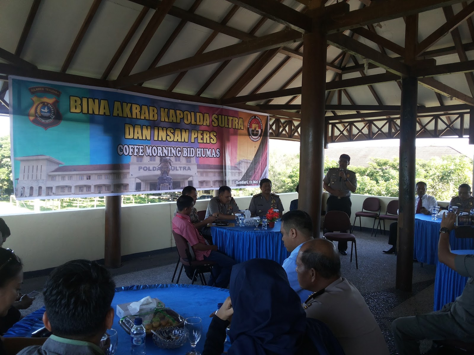 Kapolda Sultra Brigjen Pol Drs. Agung Sabar Santoso,SH,MH menggelar acara coffe Morning bersama awak media di Gazebo Dhacara Polda Sultra.