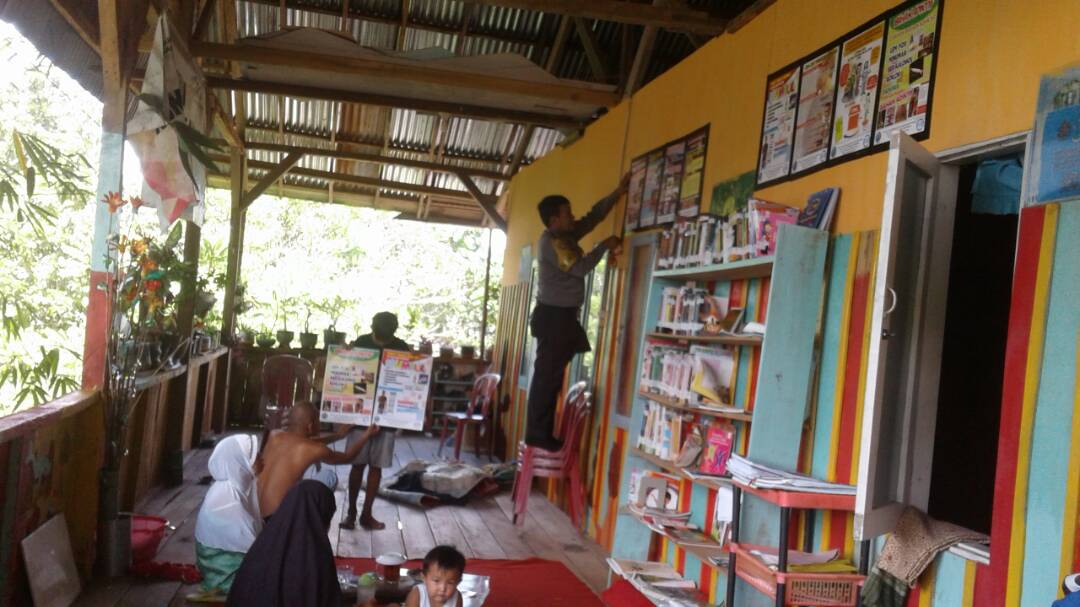 Tribratapoldasultra.com_Polres Kendari – Bertempat di Kelurahan Tipulu, Kec. Kendari Barat, Kota Kendari, bhabinkamtibmas Bripka Salam melaksanakan kegiatan pemasangan pamflet atau brosur. Rabu tanggal 19 April 2017 pukul 10.00 wita.