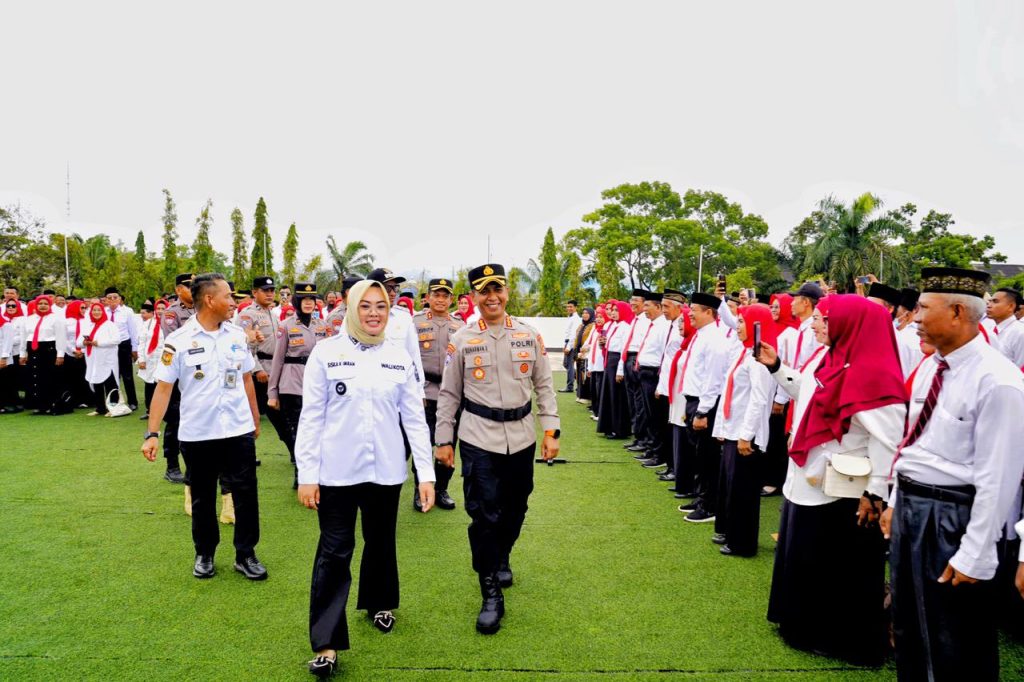 Tribratanews.sultra.polri.go.id – Kendari – Upaya memperkuat keamanan berbasis masyarakat terus digencarkan di Kota Kendari. Hal ini terlihat dari pelaksanaan Apel Kasatkamling yang diikuti hampir 1.000 RT dan RW se-Kota Kendari di Lapangan Upacara Balai Kota Kendari, Rabu (7/1/2026).
