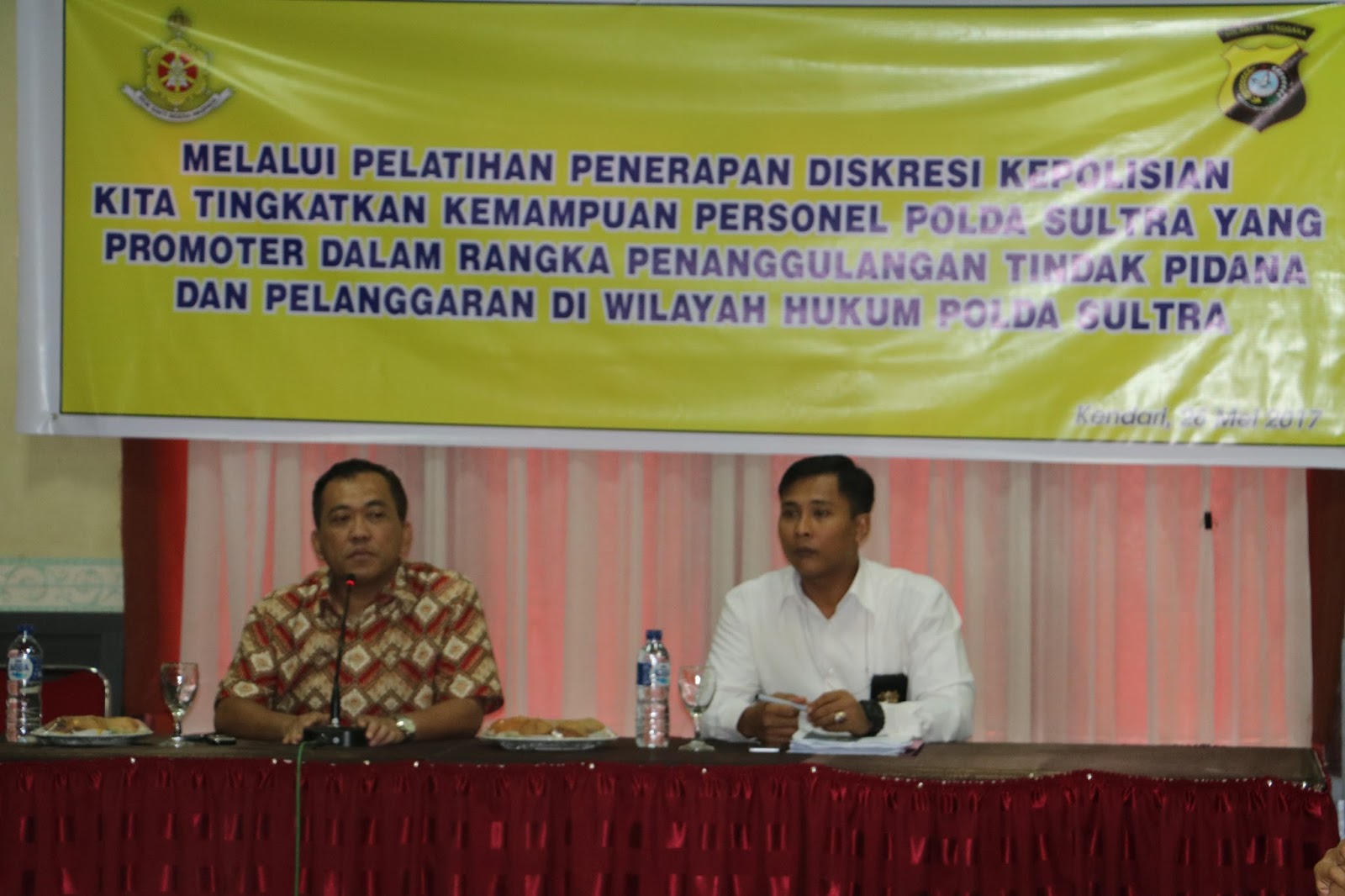 Pelatihan tersebut mengusung tema melalui pelatihan penerapan diskresi kepolisian kita tingkatkan kemampuan personel Polda Sultra yang promoter dalam rangka penanggulangan tindak pidana dan pelanggaran di wilayah hukum Polda Sultra.