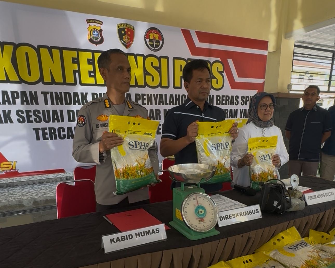 Konferensi pers dipimpin langsung oleh Direktur Krimsus Kombes Pol Dody Ruyatman, S.IK, didampingi Kabid Humas Kombes Pol Iis Kristian, S.IK, dan Kepala Perum Bulog Kantor Wilayah Sulawesi Tenggara, Siti Mardati Saing.