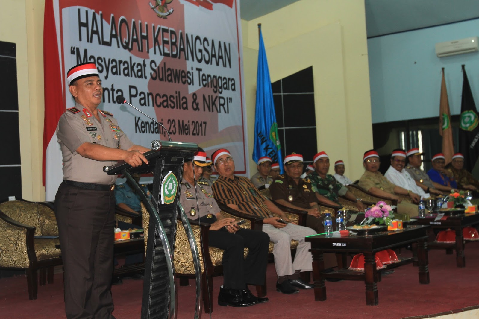 Dalam sambutannya, Kapolda Sultra berterimakasih kepada seluruh undangan dan peserta atas kehadirannya yang merupakan komitmen kuat dalam kebersamaan menjaga pancasila, kebihnekaan dan keutuhan NKRI.