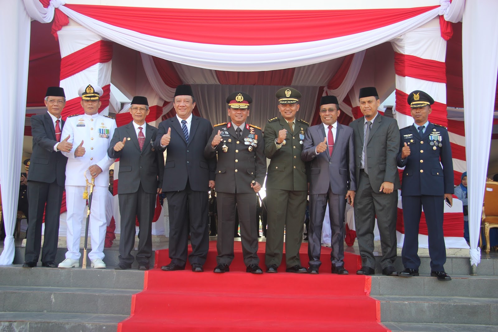 dengan acara parade dari peserta upacara dari unsur TNI dari tiga angkatan, kepolisan Polda dan Polres, unsur PNS dan Korpri dan Ormas dan dari pelajar.