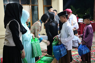 Buka puasa bersama pejabat utama Polda Sultra dengan insan pers serta anak yatim piatu dirangkaikan dengan shalat Magrib berjamaah.