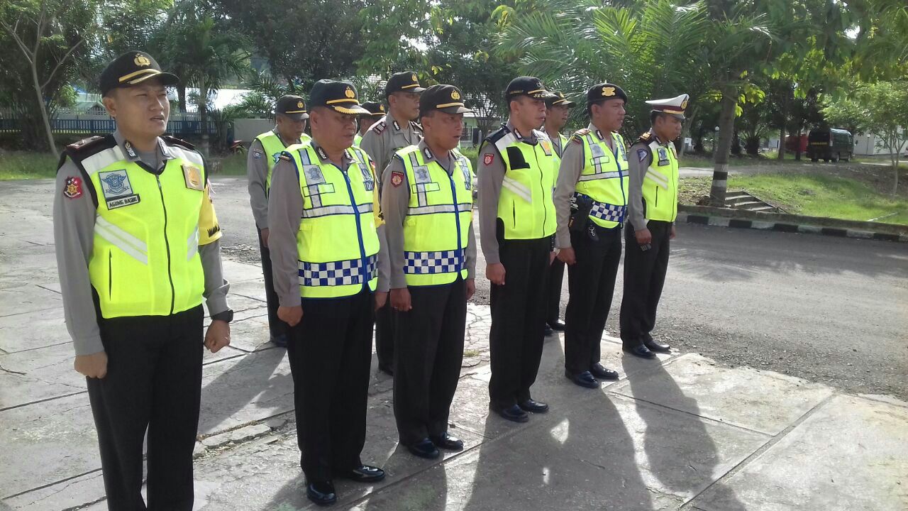 kapolres dalam arahannya menyampaikan dalam menghadapi tahapan Pilkada utamanya pelaksanaan tugas dimalam hari diharuskan memakai rompi agar terlihat jelas pada saat melaksanakan tugas malam.