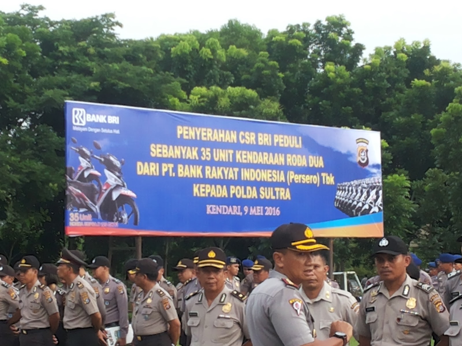Menurut Kapolda, 35 unit kendaraan ini berasal dari Pihak BRI dalam rangka mempercepat mobilitas anggota dilapangan dalam mempercepat kinerja. Sepeda motor langsung diserahkan Kapolda usai melaksanakan apel pagi, Senin 9 Mei 2016.