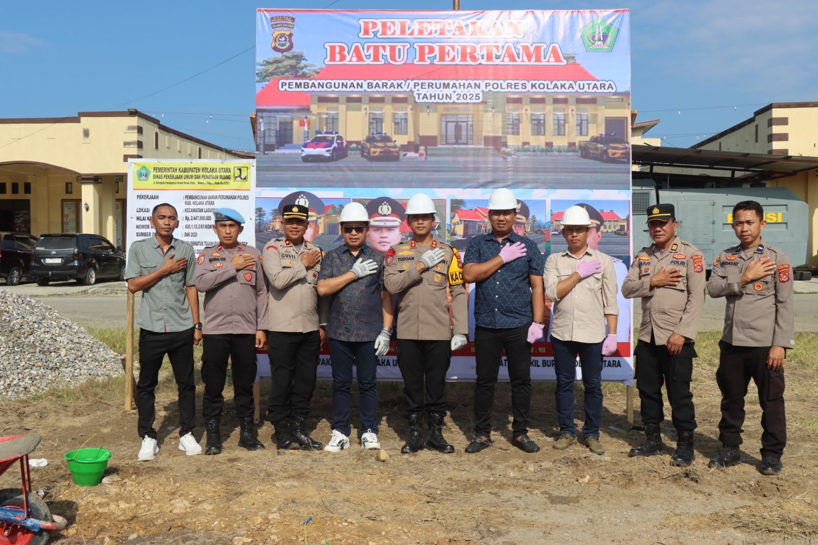 Tribratanews.sultra.polri.go.id – Kolaka Utara, 24 Juli 2025 — Dalam rangka meningkatkan sarana dan prasarana pendukung tugas kepolisian, Polres Kolaka Utara menggelar kegiatan Peletakan Batu Pertama Pembangunan Barak/Perumahan pada Jumat pagi, 24 Juli 2025, bertempat di Mapolres Kolaka Utara, Kelurahan Lasusua, Kecamatan Lasusua, Kabupaten Kolaka Utara.