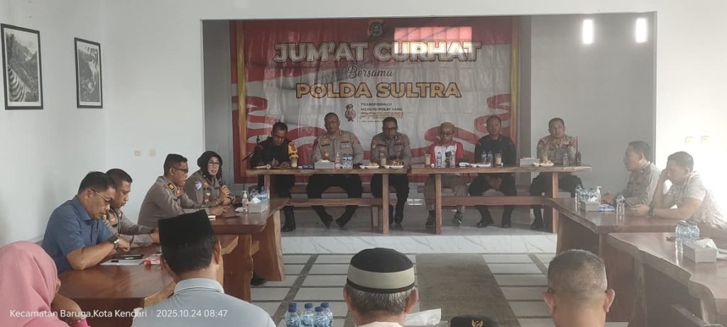 Tribratanews.sultra.polri.go.id – Kendari, — Direktorat Lalu Lintas (Ditlantas) Polda Sulawesi Tenggara melalui Kasubdit Kamsel Ditlantas menghadiri kegiatan Jumat Curhat bersama masyarakat Kelurahan Baruga, Kecamatan Baruga, Kota Kendari. Kegiatan tersebut dilaksanakan di D’Ajiks Coffee dan Bilyar, Jalan Brigjen Katamso, mulai pukul 08.00 WITA hingga selesai, Jumat 24 Oktober 2025. Jumat Curhat dipimpin oleh Wadir Pam Obvit […]