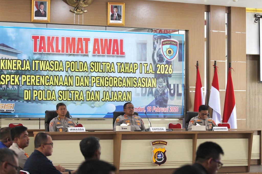 Tribratanews.sultra.polri.go.id – Kendari – Irjen Pol. Didik Agung Widjanarko, S.I.K., M.H selaku Kapolda Sulawesi Tenggara bersama Wakapolda Brigjen Pol. Dr. Gidion Arief Setyawan, S.I.K., S.H., M.Hum dan para Pejabat Utama (PJU) melaksanakan tes urine mendadak di Lobby Utama Mapolda Sulawesi Tenggara, Senin (23/2/2026). Pelaksanaan tes urine tersebut dilakukan sebagai bentuk komitmen internal kepolisian dalam menjaga […]